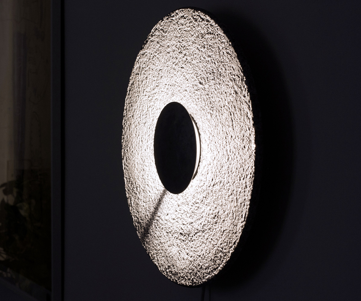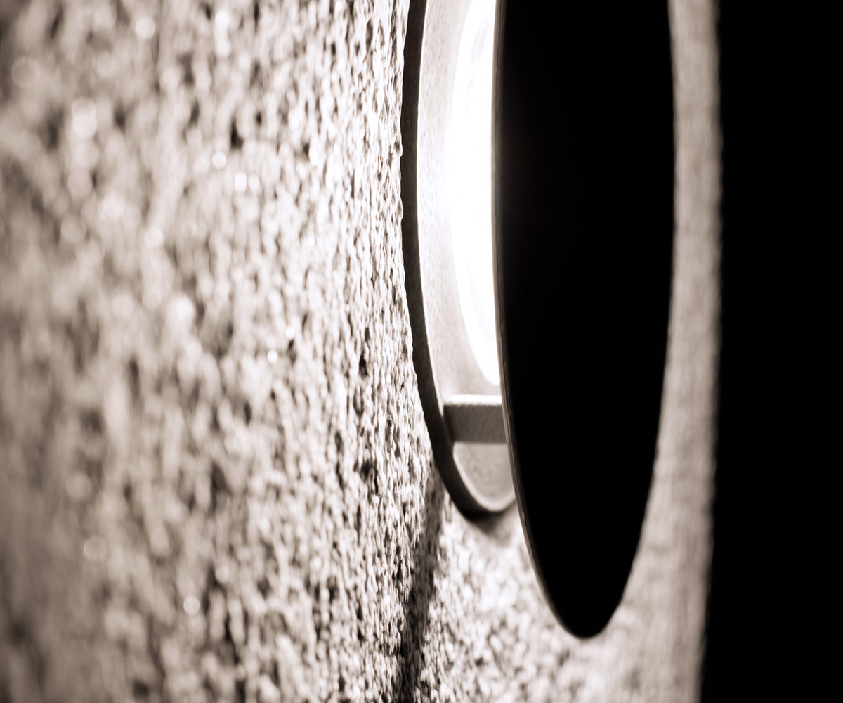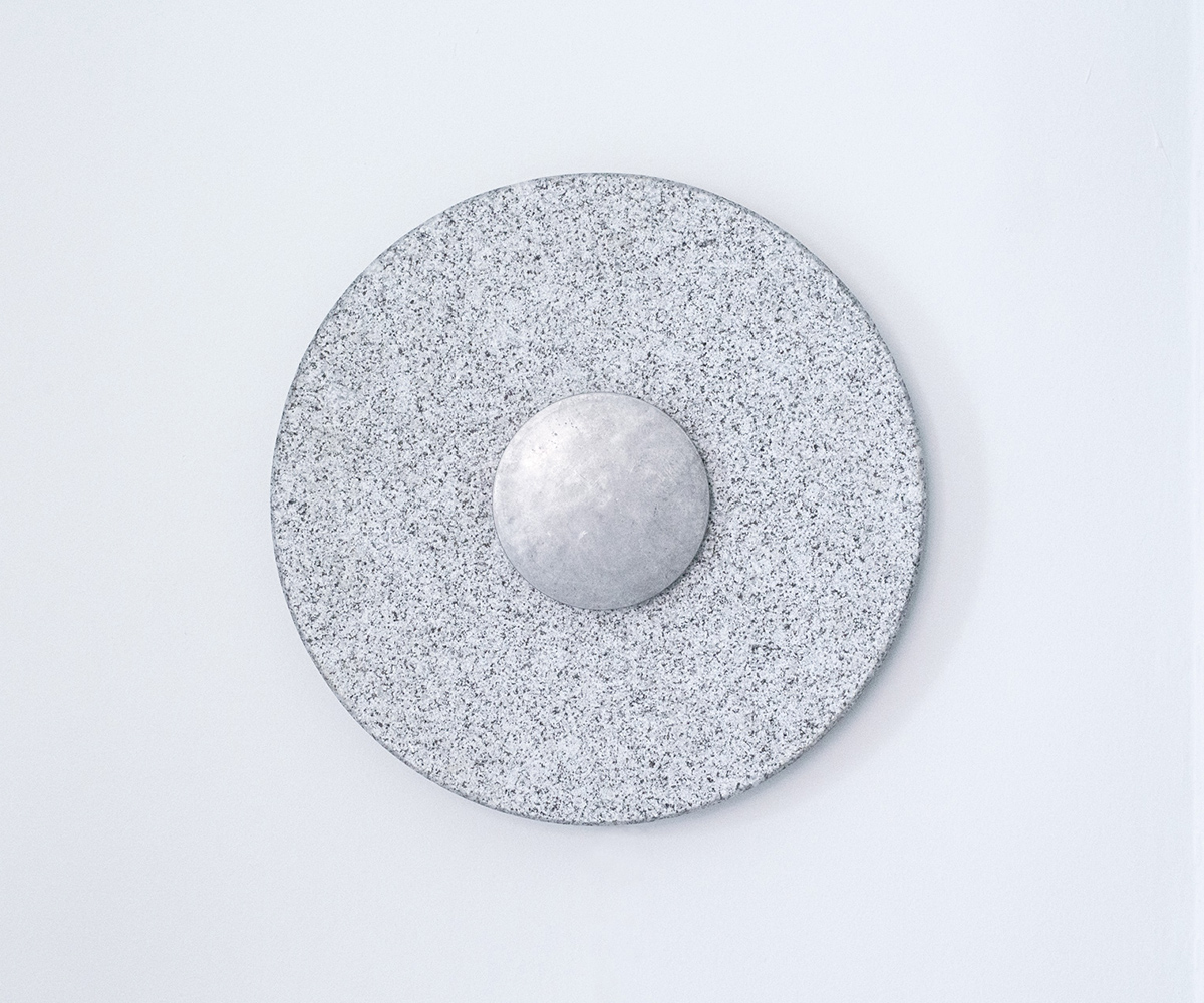 Cadran est une horloge lumineuse. Inspiré du cadran solaire, il questionne notre rapport au temps et sa perception. La lumière du soleil est remplacée par une lumière artificielle laquelle, grâce à une fine tige, génère une ombre projetée qui évolue subtilement selon l'heure de la journée. Le support en granit bouchardé accroche une lumière rasante qui détache les détails de la pierre et la brillance des quartz. Le temps passe mais l'angoisse d'être à la minute près n'existe pas.